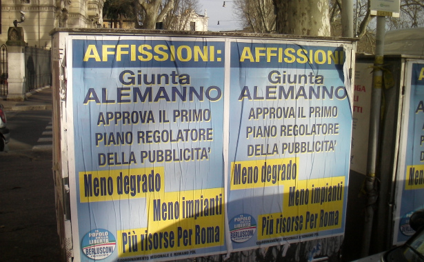 Gioco, partita, incontro. Manifesti abusivi che celebrano la fine (?) degli impianti abusivi. La foto credo dica più di ciò che mostra. Sul tema anche Riprendiamoci Roma, che ci ricorda inoltre della sanatoria per le affissioni abusive politiche.