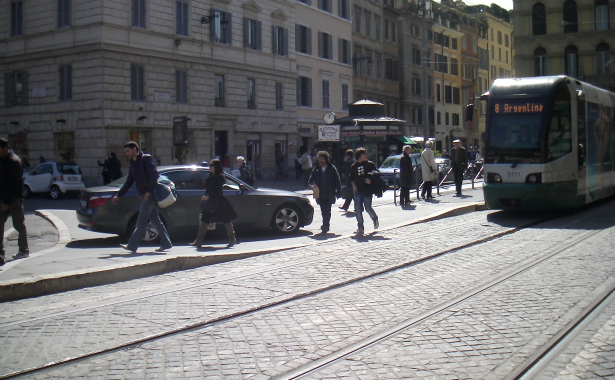 Paletti, now! In quale altro posto della Via Lattea può succedere una cosa del genere? Tutti i giorni, per tutto il giorno: macchine del Ministero di Giustizia, che è lì vicino, taxi, sirenati vari che passano sul marciapiede del capolinea del tram più frequentato in circolazione (l’8, sempre sia lodato). Quando andiamo a fare un cordone umano?