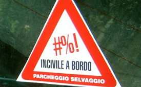 Da segnalare questa iniziativa, scovata da 06blog, degli adesivi con scritto “incivile a bordo” (c’è già una mini-rete di distribuzione). Certo, l’“incivile” tipicamente stacca l’adesivo e lo lascia per terra, il che è male, anche perché innesca un muro contro muro che nei fatti fa il loro gioco. Come i manifesti (altrettanto abusivi) per dire che i manifesti di sotto sono abusivi. Se vinceremo, sarà nel rispetto delle regole, e comunque tra generazioni.