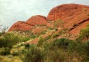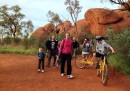 Una mattina si va ad Uluru la successiva si va a Kata-Tjuta, l’altra montagna improvvisa del parco nazionale, stavolta un conglomerato di sabbia e sassi che si svolge in cupole rosse una di fianco all’altra. Gli Anangu ci vanno ancora per i rituali di iniziazione dei fanciulli. Ma non li vedrete mai. Gli aborigeni sono riservati, non amano mettersi in mostra e preferiscono comunicare attraverso le loro arti e la loro cultura. Non amano mescolarsi con lo scenario turistico dell’Ayers Rock Resort, che pure procura loro denaro e offre un palco per trasmettere le loro tradizioni, con dimostrazioni di pittura, didgeridoo, lancio del boomerang, danza. Ayers Rock un’attrazione da milioni di dollari all’anno, e il suo valore comprende la sua storia e il suo popolo. Agli aborigeni vanno i soldi del biglietto d’ingresso al parco (25 Aus$), e dei manufatti in vendita al centro culturale, dove in pochi sintetici pannelli e in uno straordinario documentario si racconta come vivono e come è stato duro, a volte massacrante, a volte straordinariamente umano l’incontro con i “nuovi australiani”. Il loro arrivo ha sconvolto millenni di storia e migliaia di vite. Ma qui si è giunti a qualche ragionevole compromesso, per cui lo show del folclore indigeno è almeno parzialmente risparmiato ai visitatori e ci sono occasioni più soddisfacenti per conoscerne la cultura, come comprarsi una ciotola di legno, un serpente intagliato da un ramo contorto, o una pittura a puntini colorati. Sono oggetti bellissimi, che esprimono le doti di un popolo altrimenti difficile da decifrare. O meglio, ci vorrebbe molto più tempo dei due giorni solitamente dedicati al posto.