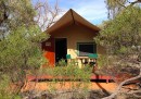 La mia camera è una tenda spartana con un terrazzino di legno, dal quale consigliano di non scendere, per evitare incontri ravvicinati con serpenti velenosi e dingo. La sera li senti ululare e, nel buio e silenzio assoluti, qualche brivido lo danno, anche se ti dicono che non sono pericolosi.