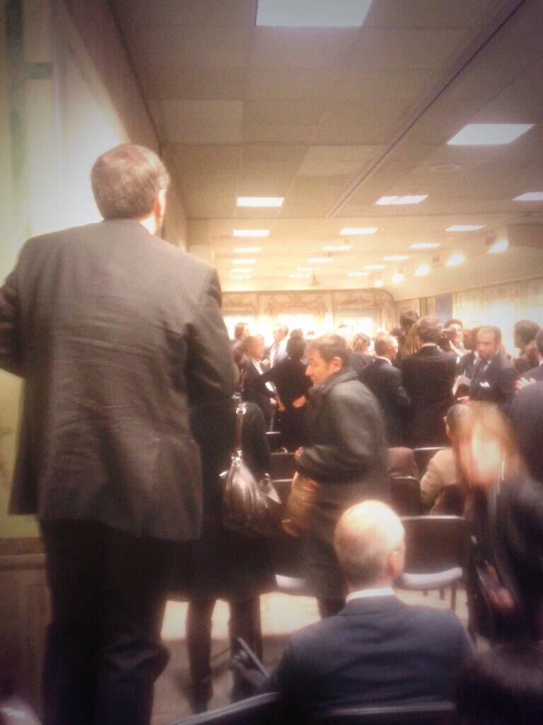 mi ha disturbato vedere un gruppo di persone davanti a me che non si erano nemmeno tolte l’impermeabile (segno che non avevano intenzione di fermarsi a lungo) alzarsi e fare gazzarra da subito (impedendomi di vedere, peraltro). sempre in fondo alla sala qualcuno, non iscritto a SC, sbraitava perchè non gli era permesso di intervenire.