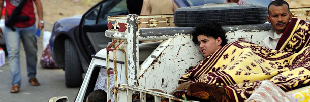 Le foto delle centinaia di persone che stanno scappando dalla città ancora in mano alle forze di Gheddafi