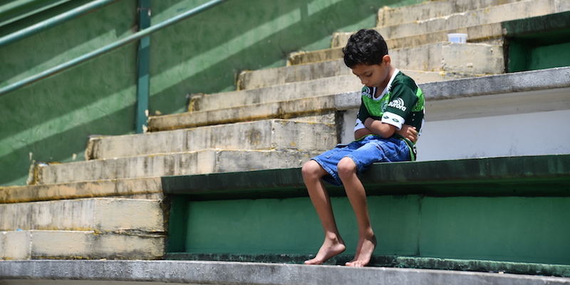 Hanno portato fiori e altri oggetti allo stadio per ricordare i calciatori che erano a bordo dell'aereo precipitato ieri in Colombia