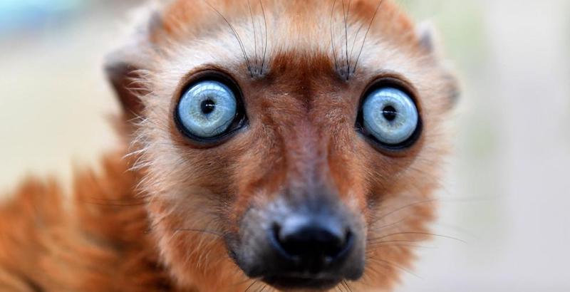 Questo è un lemure dagli occhi azzurri-azzurri, ed è insieme a un pesce unicorno, a un oritteropo e a due lorichetti, tra gli animali più fotogenici della settimana