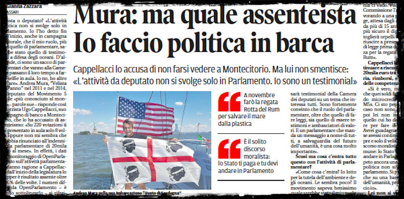 Il velista e deputato del M5s accusato di assenteismo ha detto che la politica si fa «anche in barca» e che le polemiche sul suo stipendio sono «il solito discorso moralista della gente comune»