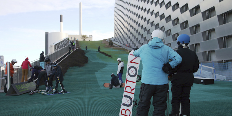 È stata costruita sul tetto dell'impianto ed è fatta con un materiale – realizzato da un'azienda italiana – che permette di sciare tutto l'anno