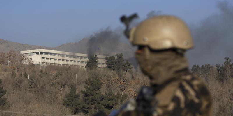 18 persone sono morte durante l'assedio dell'hotel durato 12 ore, fino all'intervento dell'esercito: l'attacco è stato rivendicato dai talebani