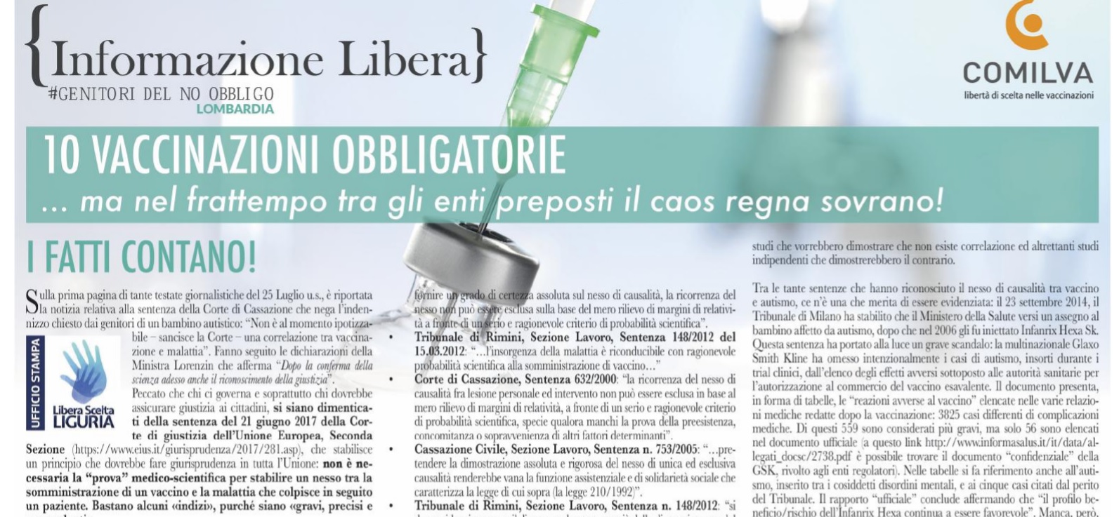 Tra le altre cose c'è scritto che «alla mamma e al papà non occorrono evidenze scientifiche» per sapere che vaccini e autismo sono collegati