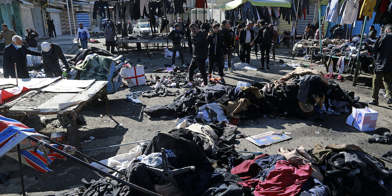 In un mercato nel quartiere Al Sinek: ci sono almeno 27 morti e 57 feriti, e l'ISIS ha rivendicato l'attacco
