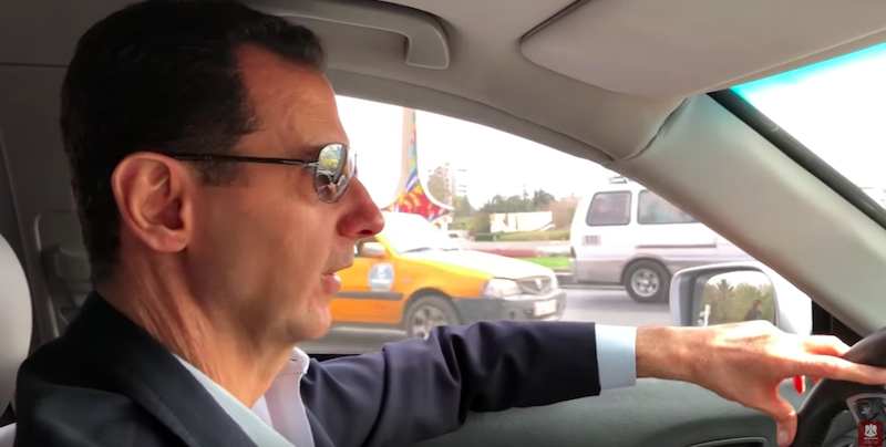 Con fare visibilmente rilassato, senza apparenti misure di sicurezza: il presidente siriano era diretto a Ghouta orientale, zona di guerra