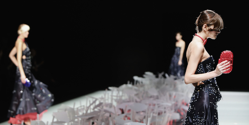 La scenografica sfilata di Emporio Armani nell’hangar di Linate