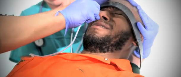 Il cantante hip hop si è fatto filmare mentre subisce lo stesso trattamento dei detenuti di Guantanamo in sciopero della fame: non è una passeggiata