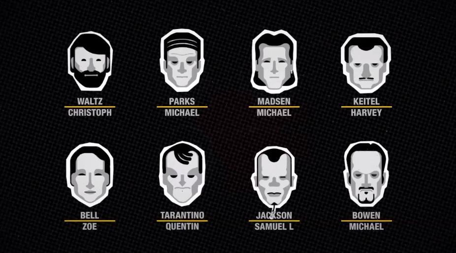 Un'infografica animata che segue da un film all'altro otto degli attori a cui Quentin Tarantino è più affezionato, cioè: Christoph Waltz, Michael Parks, Michael Madsen, Harvey Keitel, Zoe Bell, Quentin Tarantino, Samuel L. Jackson e Michael Bowen.