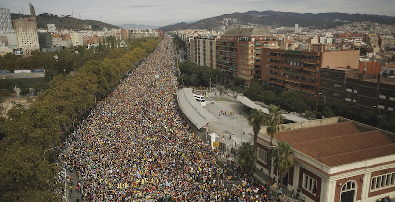 Per protestare contro le condanne ai leader indipendentisti catalani: stanno partecipando decine di migliaia di persone