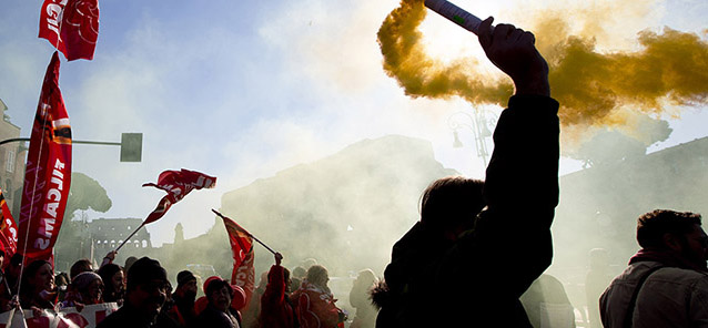 I cortei, le manifestazioni e gli scontri a Roma, Milano e Torino durante le manifestazioni per lo sciopero indetto da CGIL e UIL