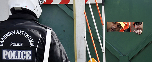 La polizia ha sgomberato un deposito occupato da 9 giorni: si litiga sui tagli agli stipendi, in una storia un po' esemplare della situazione in Grecia