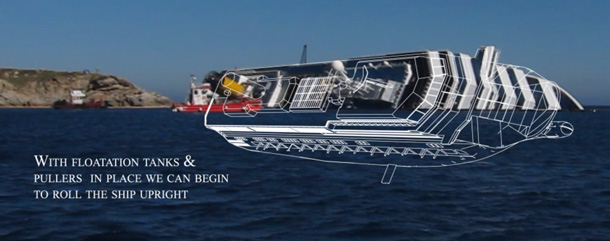 Il raddrizzamento del relitto ripreso da diverse angolature da Discovery Channel