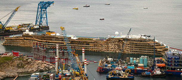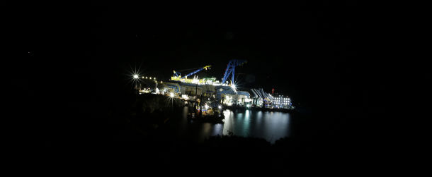 La diretta video delle operazioni di "parbuckling" all'Isola del Giglio per riportare in assetto verticale il relitto della nave da crociera