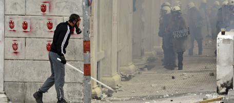 Le foto degli scontri tra manifestanti e polizia davanti al Parlamento, nel giorno dell'approvazione delle misure di austerità