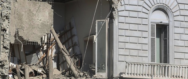 Un'ala di un palazzo vicino a piazza della Repubblica si è sbriciolata: sembra non ci siano feriti, ma il traffico ha bloccato la città