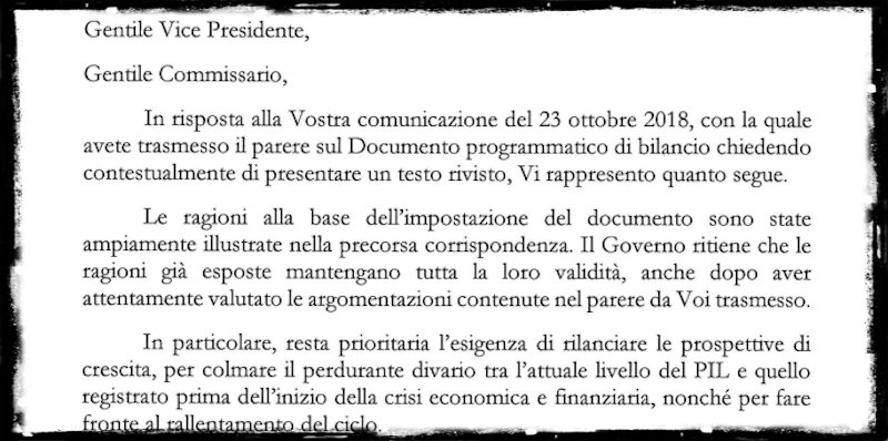 La lettera del ministro Tria alla Commissione Europea non contiene concessioni sul deficit o sulle stime di crescita, ma solo un aumento della vendita del patrimonio pubblico
