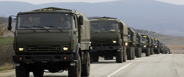 Decine di veicoli militari senza targa sono state viste in movimento verso la capitale Simferopoli, una delegazione dell'OSCE non è potuta entrare nella penisola per il terzo giorno di fila