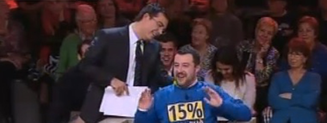 Il segretario della Lega ha detto di essere un fiero sostenitore dei prodotti fatti in Italia, ma poi Giovanni Floris gli ha controllato l'etichetta