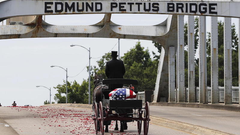 Come parte del suo corteo funebre, per ricordare la storica manifestazione pacifica del 1965 repressa violentemente dalla polizia dell'Alabama