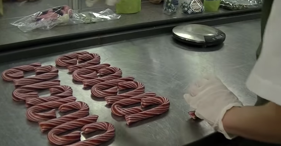L'intero - ipnotico - processo della produzione a mano dei bastoncini di zucchero, le tipiche caramelle di Natale