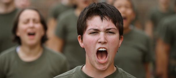Reportage fotografico dalle basi militari americane dove le soldatesse faticano, sparano e urlano