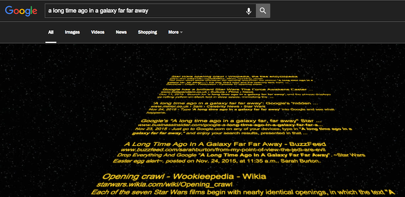 Per esempio: sapete che potete fare assomigliare la pagina di ricerca all'inizio di Star Wars? E che si può giocare a vecchi videogiochi degli anni Settanta?