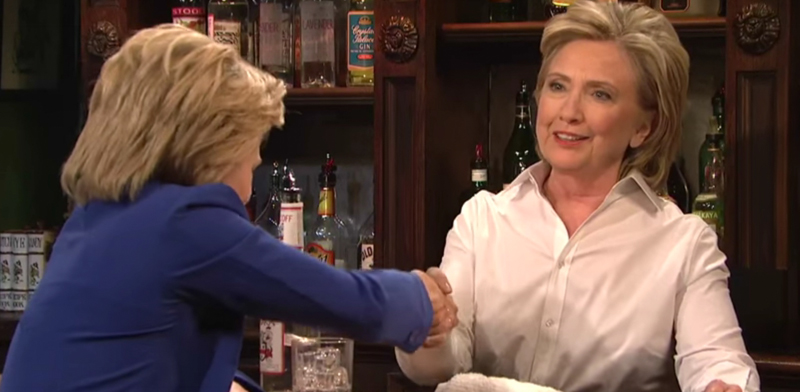 Serve da bere a Hillary Clinton (interpretata da Kate McKinnon) e scherza sulla campagna elettorale: è l'ultimo di una serie di tentativi di cambiare la sua immagine pubblica