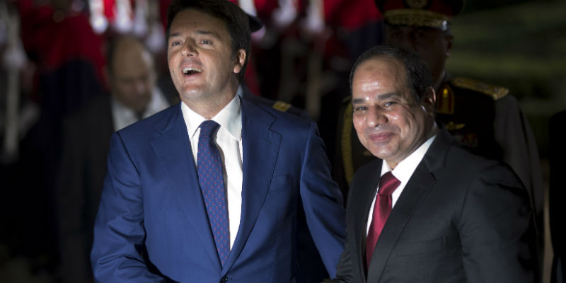 Il presidente del Consiglio non ha ancora preso una posizione forte sul caso del ricercatore ucciso in Egitto: c'entrano le sue strette relazioni col dittatore egiziano? [Continua]