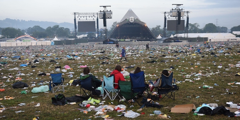 Le foto della distesa di spazzatura che gli oltre 170 mila partecipanti a uno dei più importanti festival musicali al mondo si sono lasciati alle spalle domenica