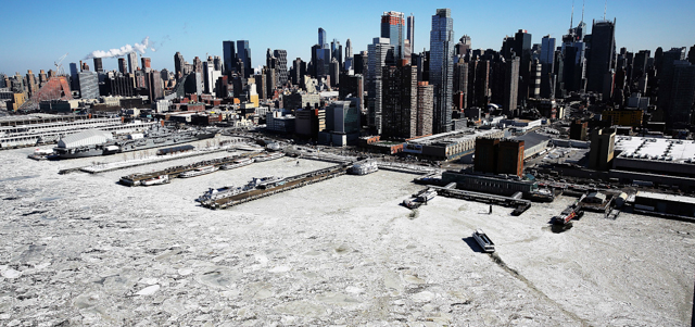 Fotografie di Spencer Platt dell'East River e del fiume Hudson, con moltissimo ghiaccio