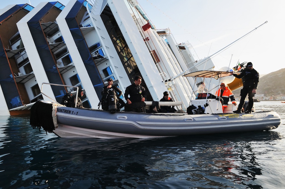 Le immagini delle ricerche dei dispersi e del posizionamento delle micro-cariche esplosive sulle fiancate della nave all'isola del Giglio