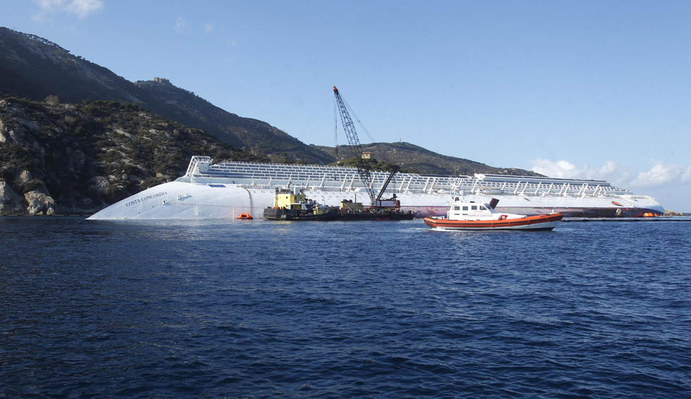 Le immagini dall'isola del Giglio, dove il relitto si è di nuovo mosso facendo sospendere le ricerche dei dispersi e il ritorno di Schettino a casa