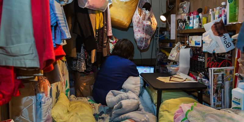 Un fotografo giapponese ha raccontato come si vive nelle stanze di un ostello senza porte né finestre: molto stretti