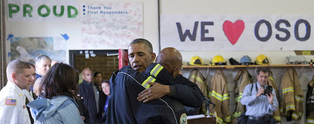 Il presidente è andato nella piccola città a nord di Seattle dove sono diventati 41 i morti accertati per una grande frana