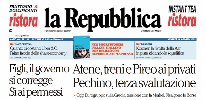 L'accordo della Grecia con i creditori, i nuovi dati sul PIL italiano e la terza svalutazione dello yuan decisa dalla Cina