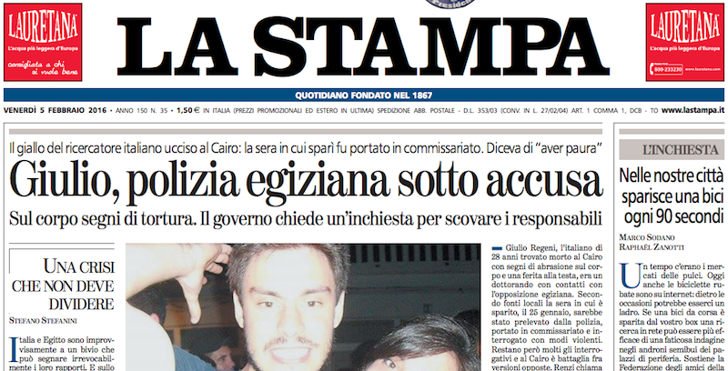 La morte di Giulio Regeni e, sul Manifesto, l'ultimo articolo che aveva scritto prima di morire