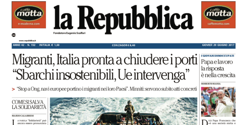 Le prime pagine di giovedì 29 giugno 2017