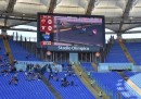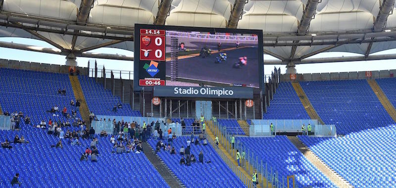 L'ultimo Gran Premio del Mondiale è stato trasmesso dal maxischermo dell'Olimpico prima di Roma-Lazio