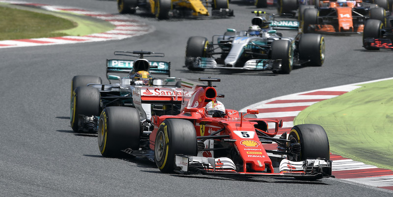 Si inizia alle 14: Hamilton è in pole position, le Ferrari di Vettel e Raikkonen partono rispettivamente dalla terza e quarta posizione