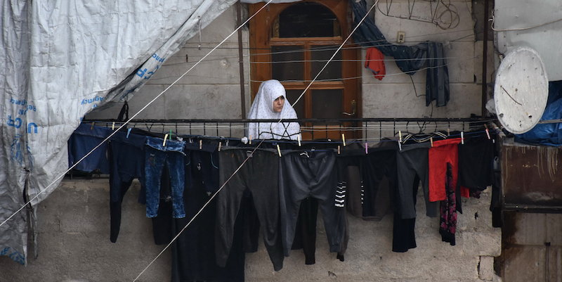 Dei ragazzi palestinesi hanno messo in piedi un'esibizione improvvisata, in mezzo agli edifici distrutti dalla guerra civile siriana