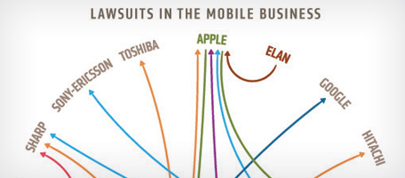 Due infografiche mostrano la litigiosità dei grandi produttori di cellulari che si fanno concorrenza anche con decine di cause legali