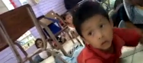 Una maestra fa cantare una filastrocca agli alunni per distrarli dagli spari dei narcos