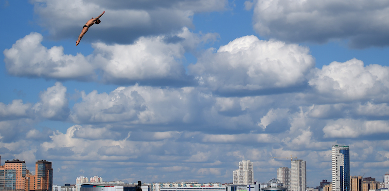 Cioè dei tuffatori che si lanciano da una piattaforma a 27 metri, e alle proprie spalle hanno solamente le nuvole e le cime dei palazzi