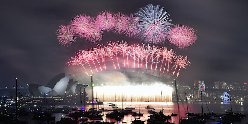 Foto di fuochi d'artificio e festeggiamenti a Sydney, Melbourne e Auckland